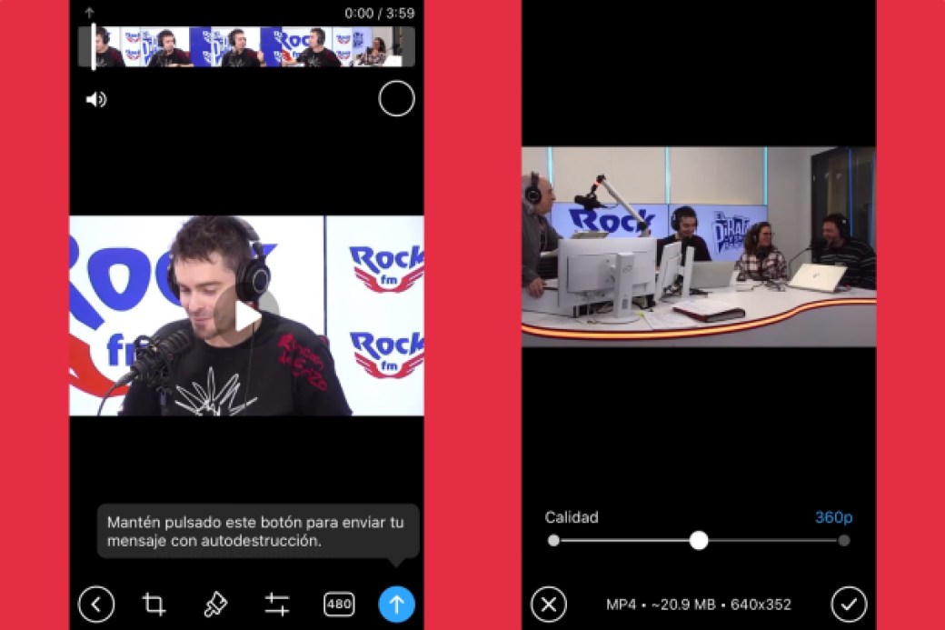 Otro aspecto interesante, si vas a compartir vídeos de larga duración y con asiduidad, es la posibilidad de cambiar su calidad a enviarlo. Ten en cuenta que a más calidad más ocupará. Esto implica consumir más datos en el envío y que tardará más en ser enviado y recibido si la conexión no es del todo buena.
