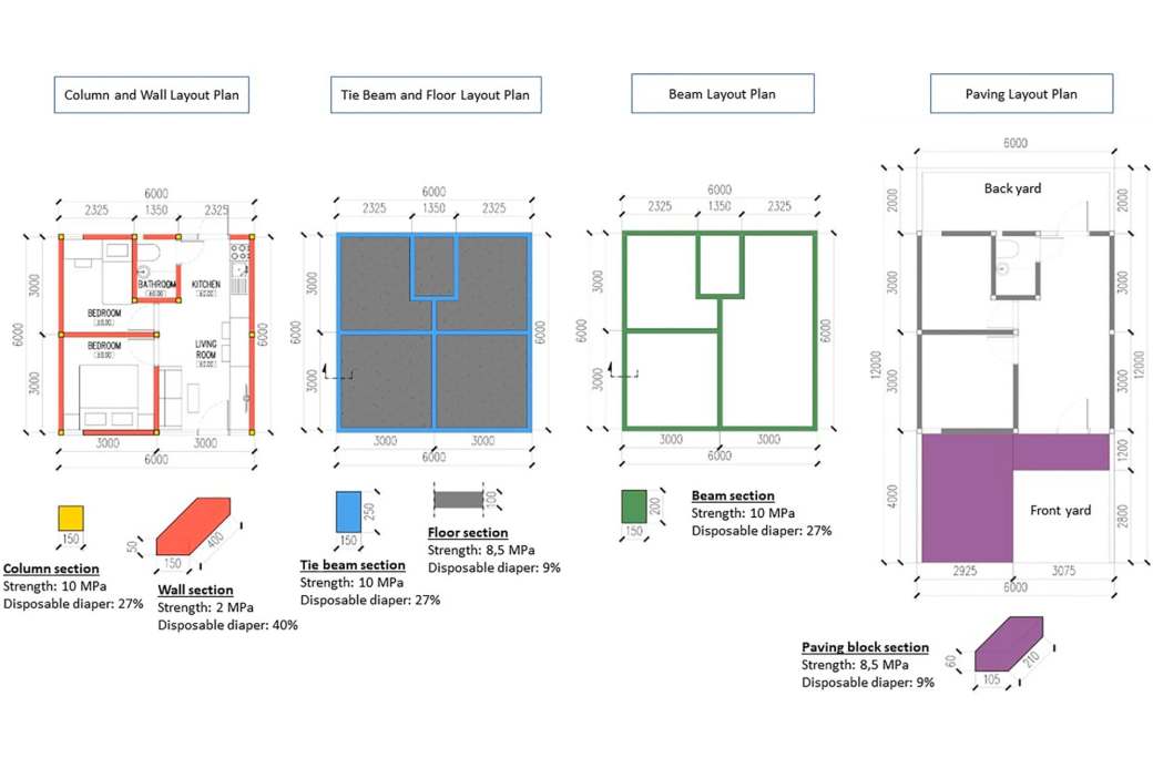 Tal y como explica la introducción del artículo, “el escenario de diseño comprendía la construcción de una vivienda de bajo coste con una superficie en planta de 36 m2. Los resultados experimentales indican que los residuos de pañales desechables para utilizarlos como materiales compuestos del edificio tienen una capacidad máxima del 10% para los componentes estructurales y del 40% para los componentes no estructurales y arquitectónicos. El prototipo de vivienda también revela que se pueden disminuir y utilizar 1,73 m3 de residuos de pañales desechables para una superficie de vivienda de 36 m2”.