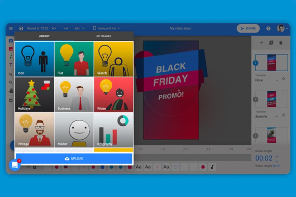 En los vídeos puedes combinar imagen real con dibujos y animaciones. Por lo demás, de ti depende su duración. Eso sí, según elijas la versión gratuita o de pago podrás crear vídeos de entre uno y 30 minutos.