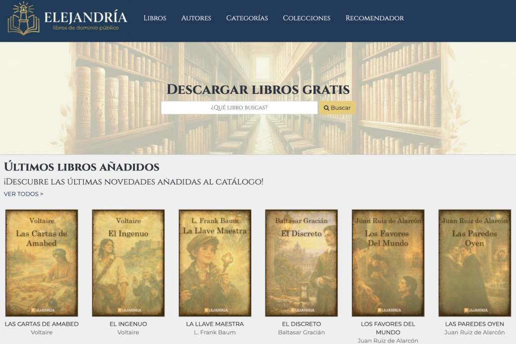 A partir de Gutenberg han surgido muchos proyectos similares. Si andas buscando ebooks y libros gratis en español, de autores españoles, hispanoamericanos o de otras latitudes y lugares, en Elejandría hallarás un enorme catálogo de libros de dominio público. Sus libros están bien curados, como se dice hoy en día, y están disponibles en PDF, ePub y MOBI para poder leerlos en cualquier dispositivo de lectura. Además, están bien organizados para facilitar su búsqueda y consulta.
