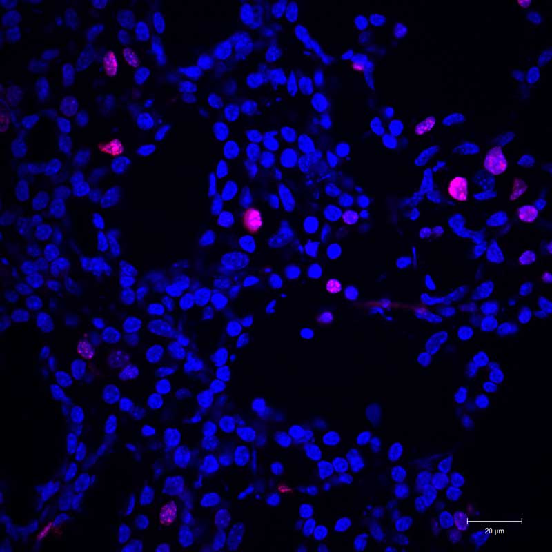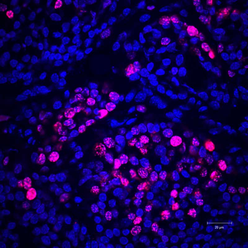 Sin células de grasa beige: las células cancerosas se multiplican activamente (en rosa).