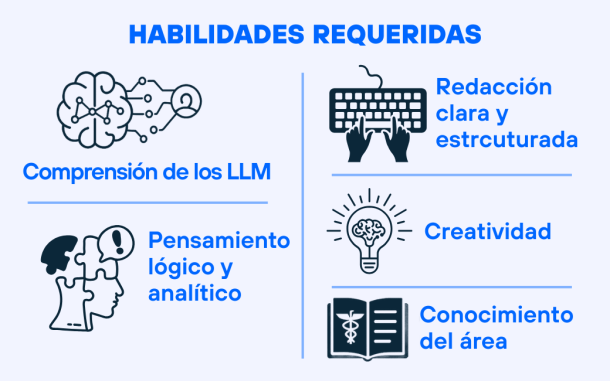 Si quieres saber cómo ser ingeniero de prompts, te detallamos las habilidades que se requieren y cómo se estructura un prompt eficaz: