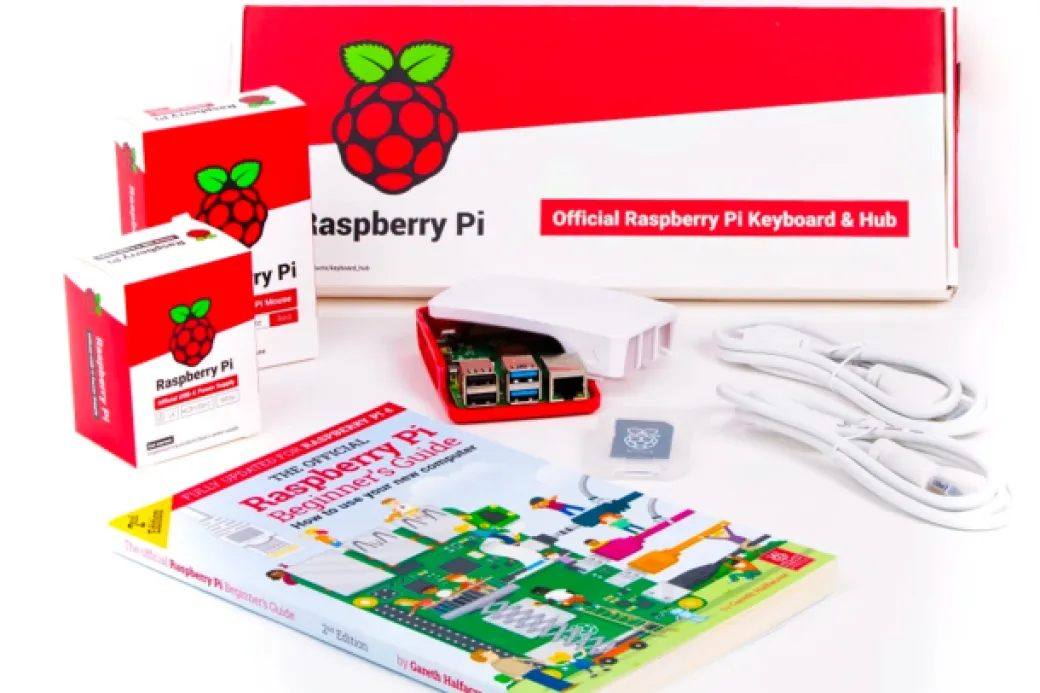 Por un módico precio, este kit oficial ofrece, además de la propia placa base Raspberry Pi, teclado y ratón oficiales, dos cables HDMI, conector de corriente USB-C para alimentar el dispositivo, la carcasa oficial, una tarjeta SD de 16 GB para el software y, como acompañante inseparable, la Official Raspberry Pi Beginner’s Guide, la guía oficial para principiantes de Raspberry Pi.