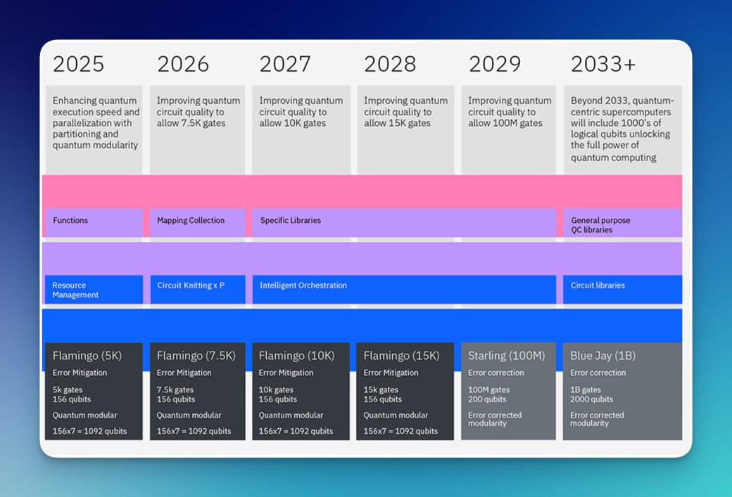 Tras la presentación de Condor, IBM tiene una hoja de ruta establecida que pretende acabar en 2033 con Blue Jay, una máquina que quieren que solvente los, hasta ahora, insalvables errores cuánticos.